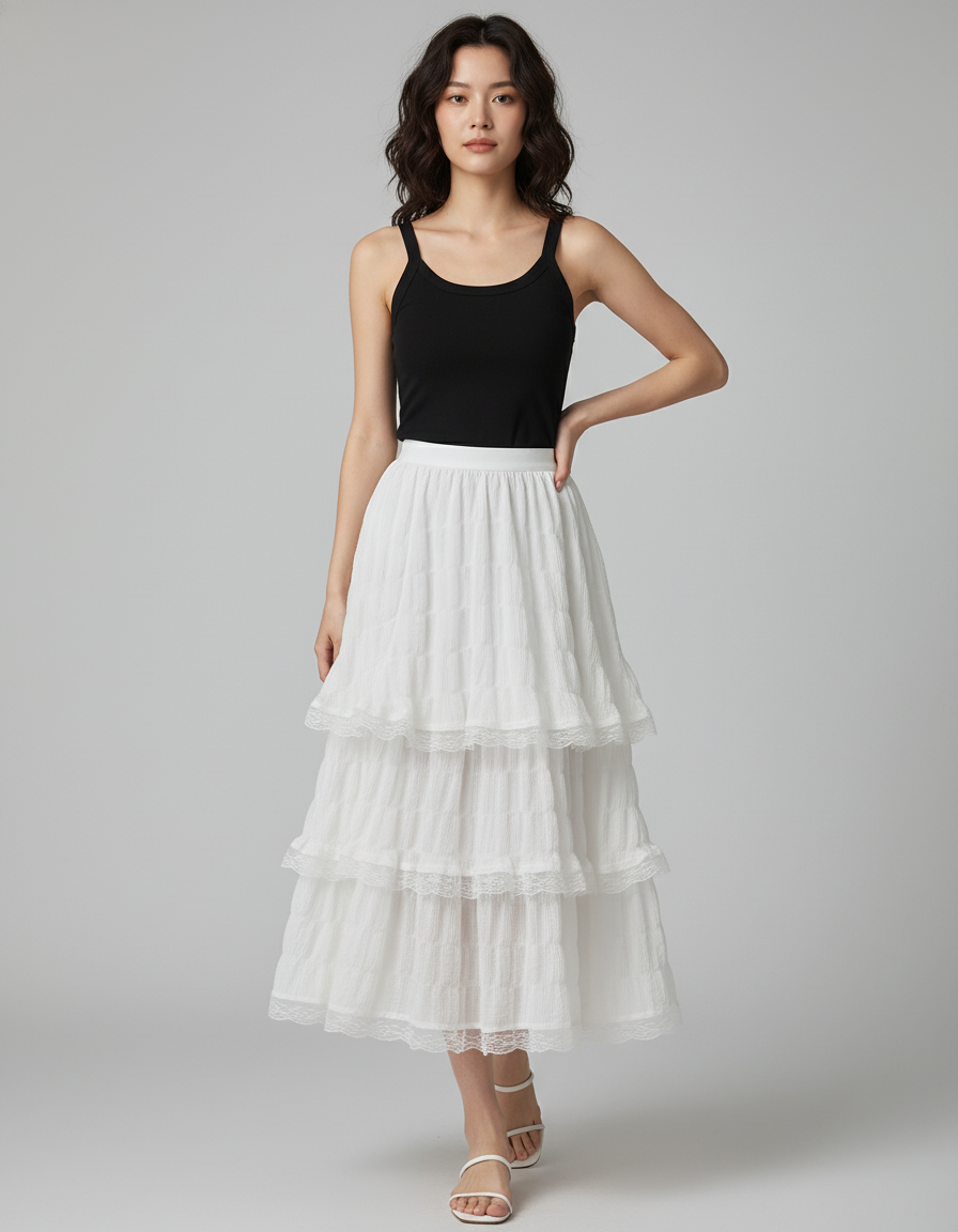 Jupe Blanche À Volants Dentelle Fluide Bohème : L'Élégance Décontractée Réinventée