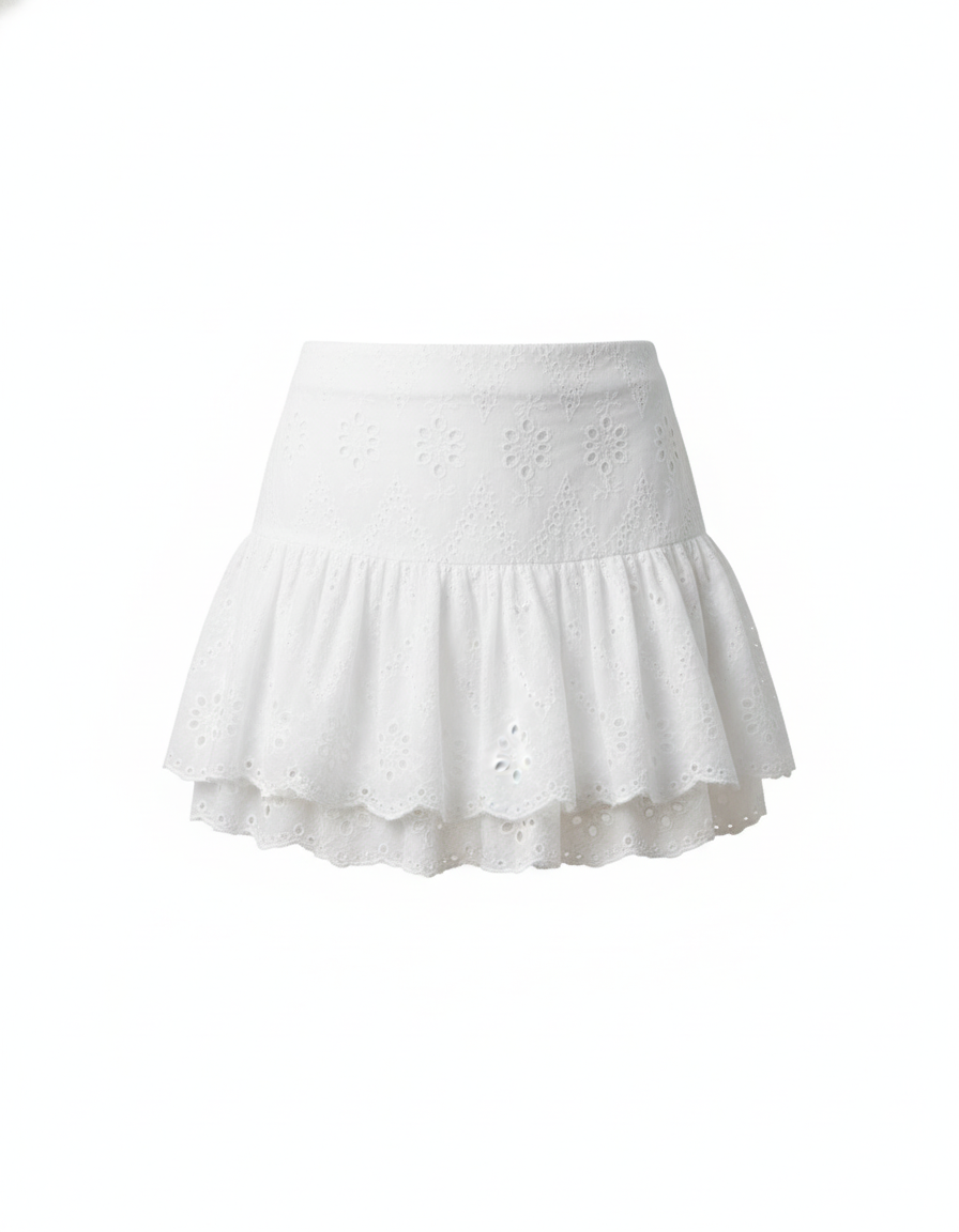 Jupe Blanche Boheme Courte à Broderie Ajourée
