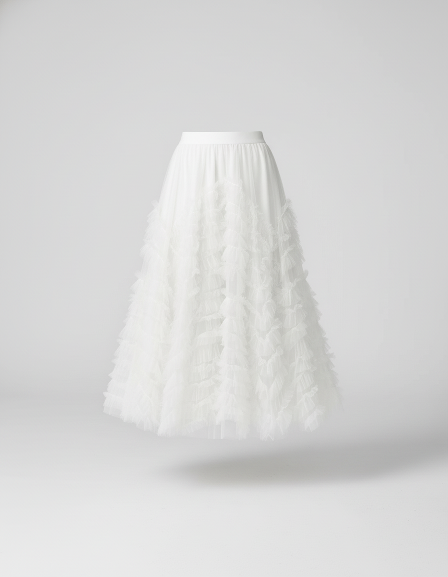 Conçue pour sublimer chaque silhouette, cette jupe à volants en tulle offre bien plus qu'une esthétique. Son tissu léger et son tombé impeccable garantissent une liberté de mouvement absolue, vous permettant de danser et de vous déplacer avec une aisance remarquable. Chaque volant est pensé pour créer un volume gracieux et aérien, sans jamais alourdir la silhouette. Vous apprécierez la sensation de légèreté et le confort tout au long de la journée ou de la soirée, confirmant que l'élégance véritable ne sacrifie jamais le bien-être. Sa fluidité assure un port impeccable et un confort inégalé.
