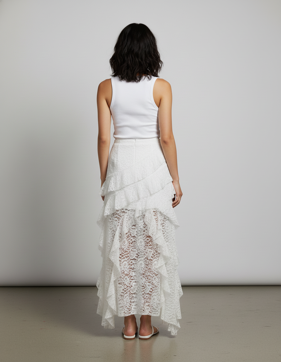 Jupe Blanche Dentelle Volants Élégante : L'Allure Romantique Par Excellence