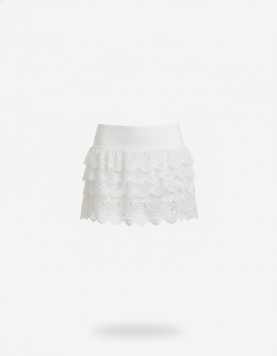 Ce qui la distingue, c'est son travail artisanal exceptionnel : une superposition minutieuse de dentelle de qualité supérieure, créant des volants aériens qui ondulent avec chaque pas. Loin des imitations, chaque détail de cette jupe reflète un luxe discret et une confection haut de gamme. Sa blancheur éclatante et son style romantique sont parfaitement équilibrés pour une esthétique à la fois intemporelle et résolument actuelle. C'est la pièce forte qui transformera un simple débardeur en une tenue sophistiquée ou complétera un ensemble plus habillé avec une touche de fantaisie raffinée.