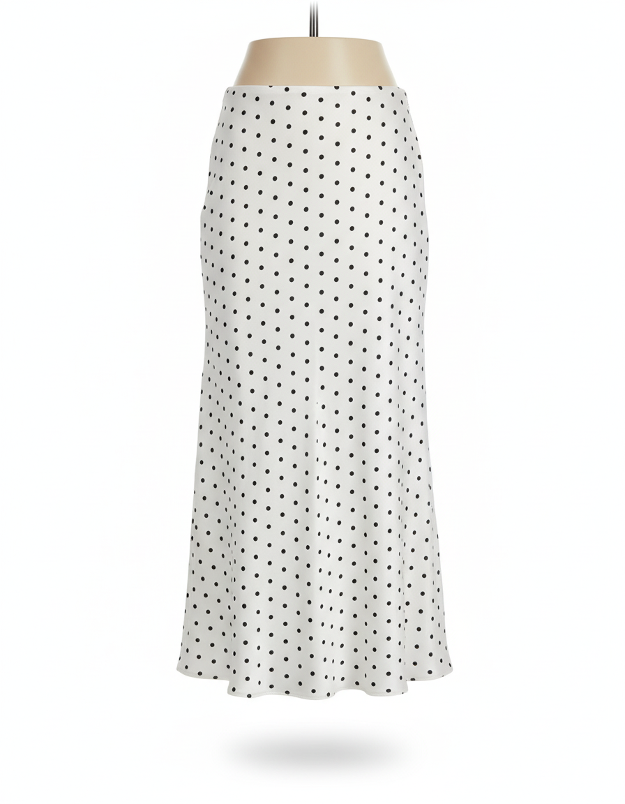 - Couleur: Jupe blanche avec motifs à pois noirs.