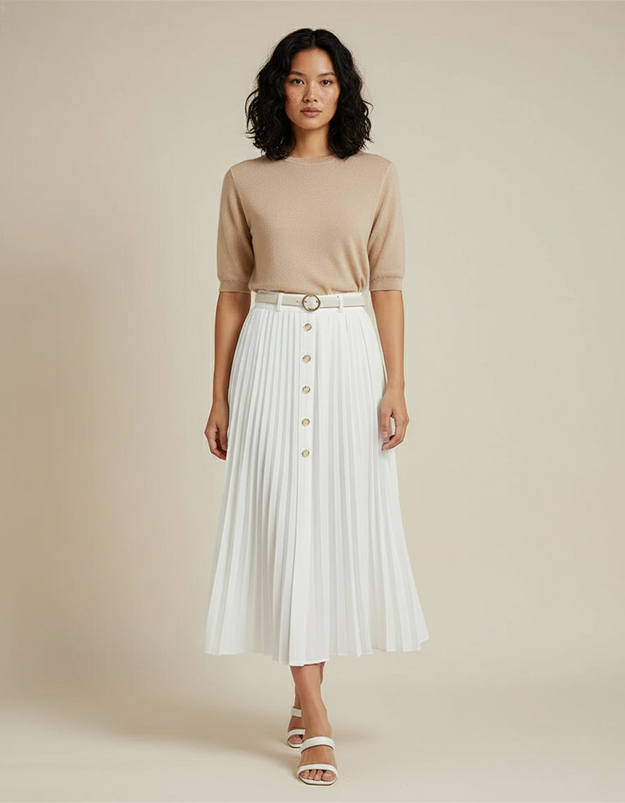 Jupe Blanche Plissée Boutonnée : L'Élégance Versatile au Quotidien