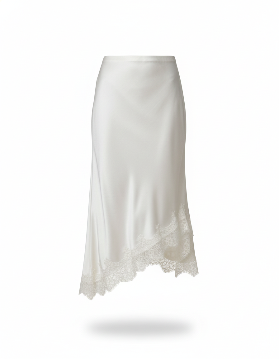 Jupe Blanche Satin Dentelle Élégante Raffinée