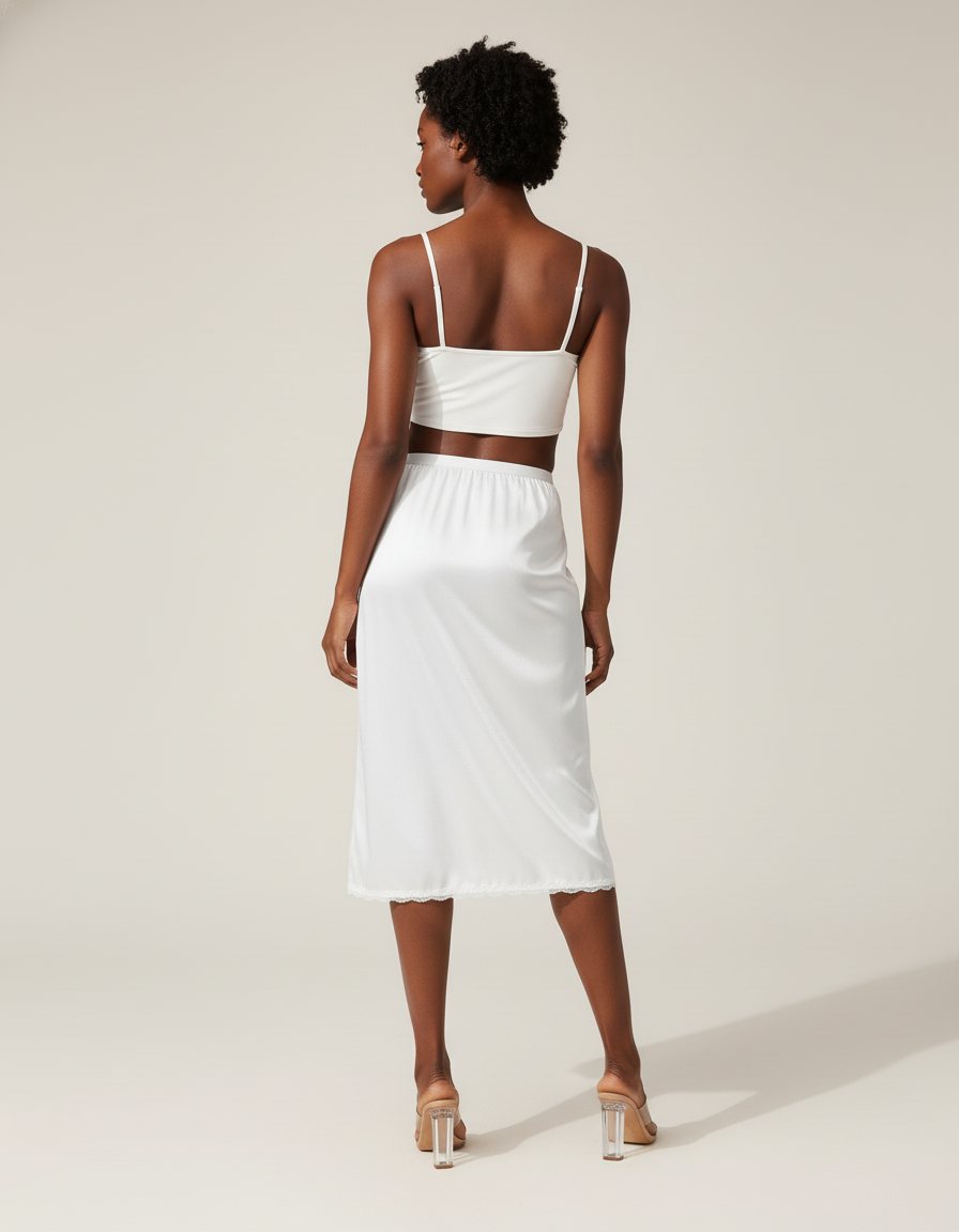 La Jupe Blanche Satinée Fluide Dentelle : L'Élégance au Quotidien