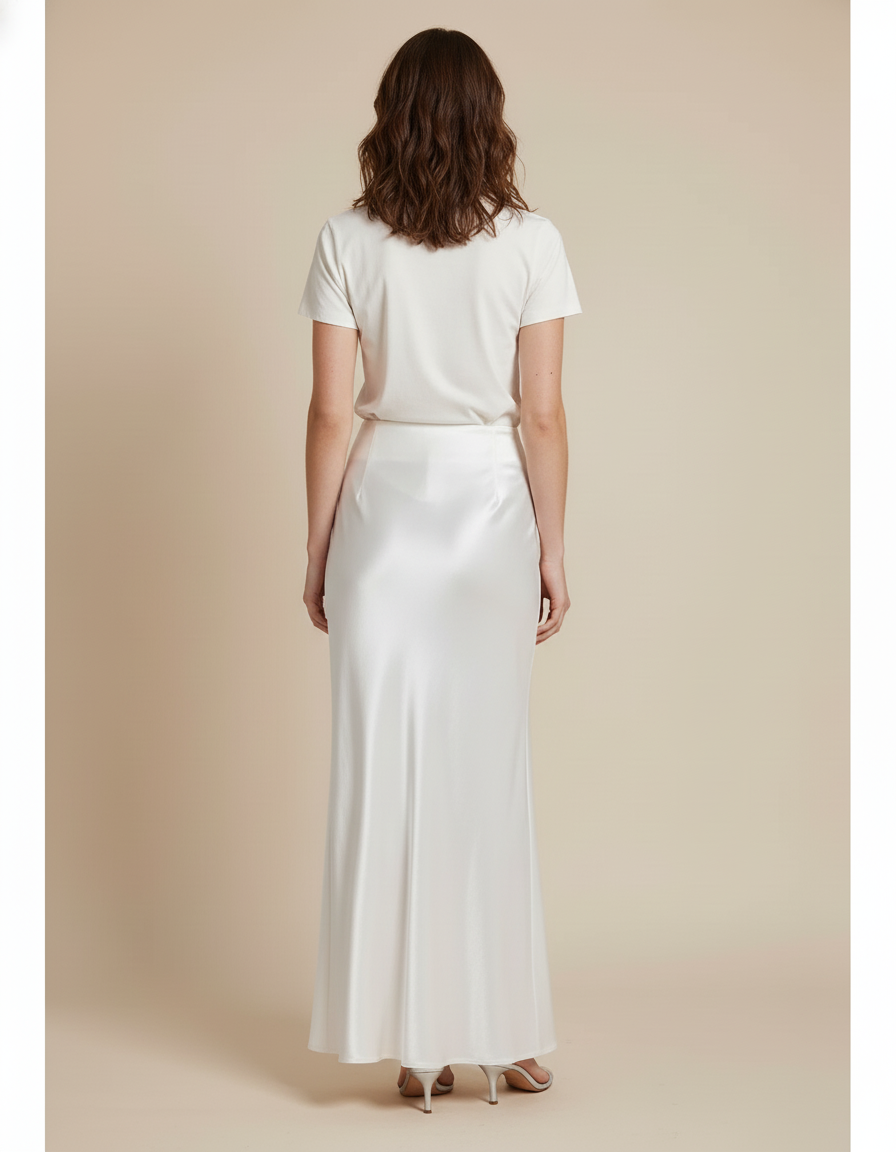 L'Élégance Redéfinie : La Jupe Droite en Satin Blanc, Votre Nouvelle Essentielle
