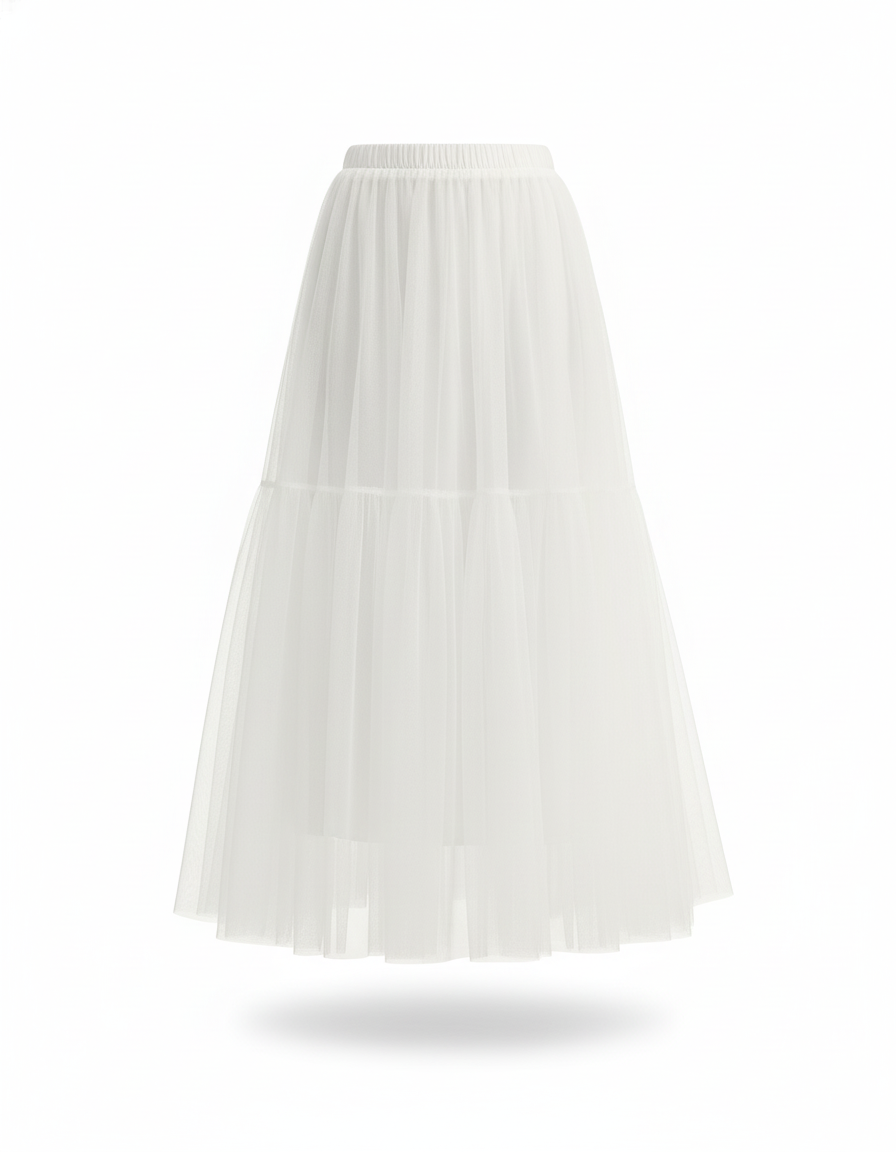 L'Élégance Aérienne Réinventée : La Jupe Blanche Tulle Fluide Élégante