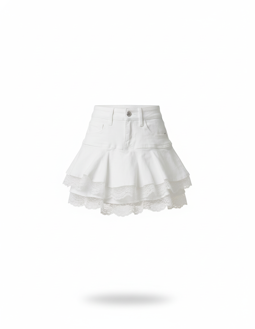 L'Élégance Décontractée Réinventée : Jupe Blanche à Volants et Dentelle