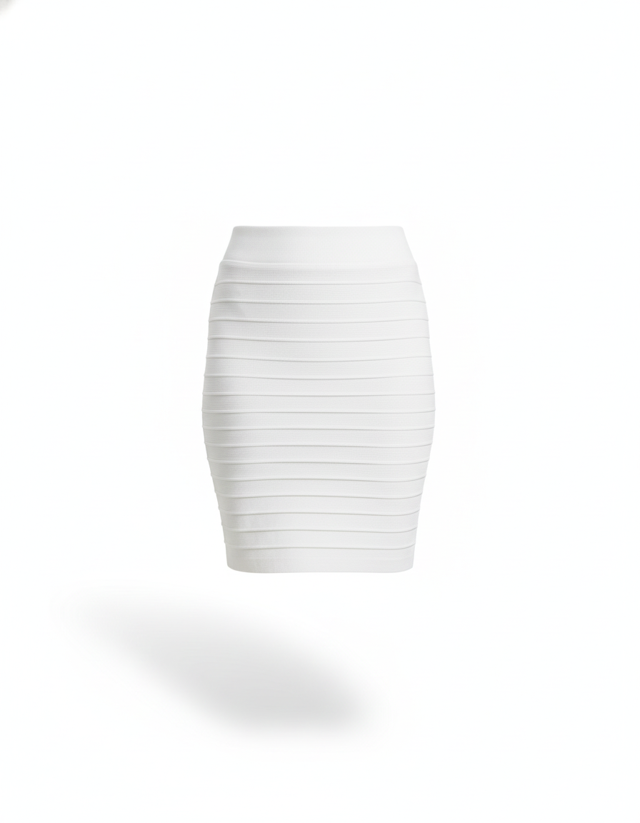 Découvrez la Jupe Côtelée Blanche, une pièce maîtresse qui incarne la sophistication moderne et le raffinement audacieux. Conçue pour la femme exigeante qui navigue entre ses rendez-vous professionnels et ses soirées mondaines avec une aisance incomparable, cette jupe moulante en maille haut de gamme sculpte et sublime votre silhouette avec une précision remarquable. Son design côtelé unique apporte une texture visuelle riche et une dimension luxueuse, vous assurant une allure chic et contemporaine en toutes circonstances. C'est l'assurance d'une élégance intemporelle, où le confort rencontre le raffinement absolu pour une confiance inébranlable.
