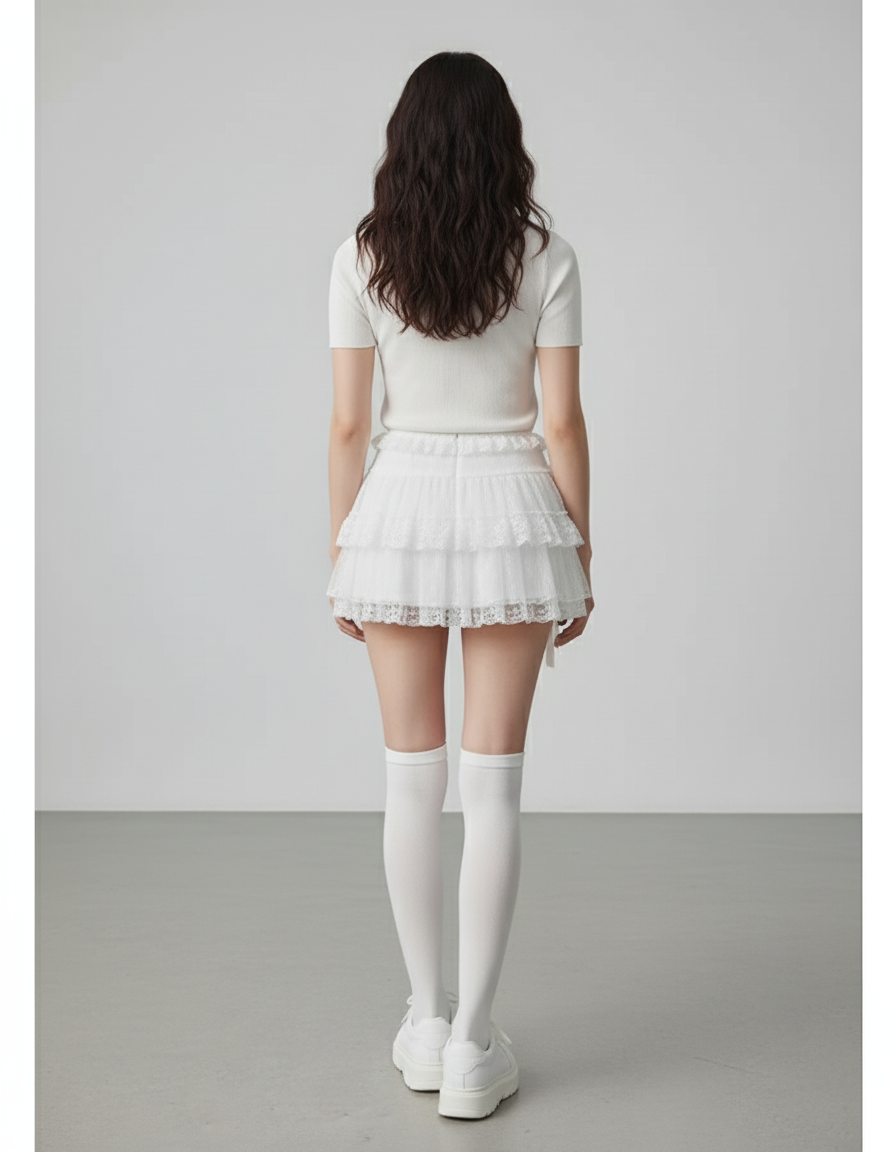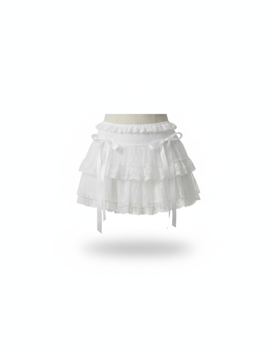 Jupe Courte à Volants et Rubans : Jupe Dentelle Blanche Courte