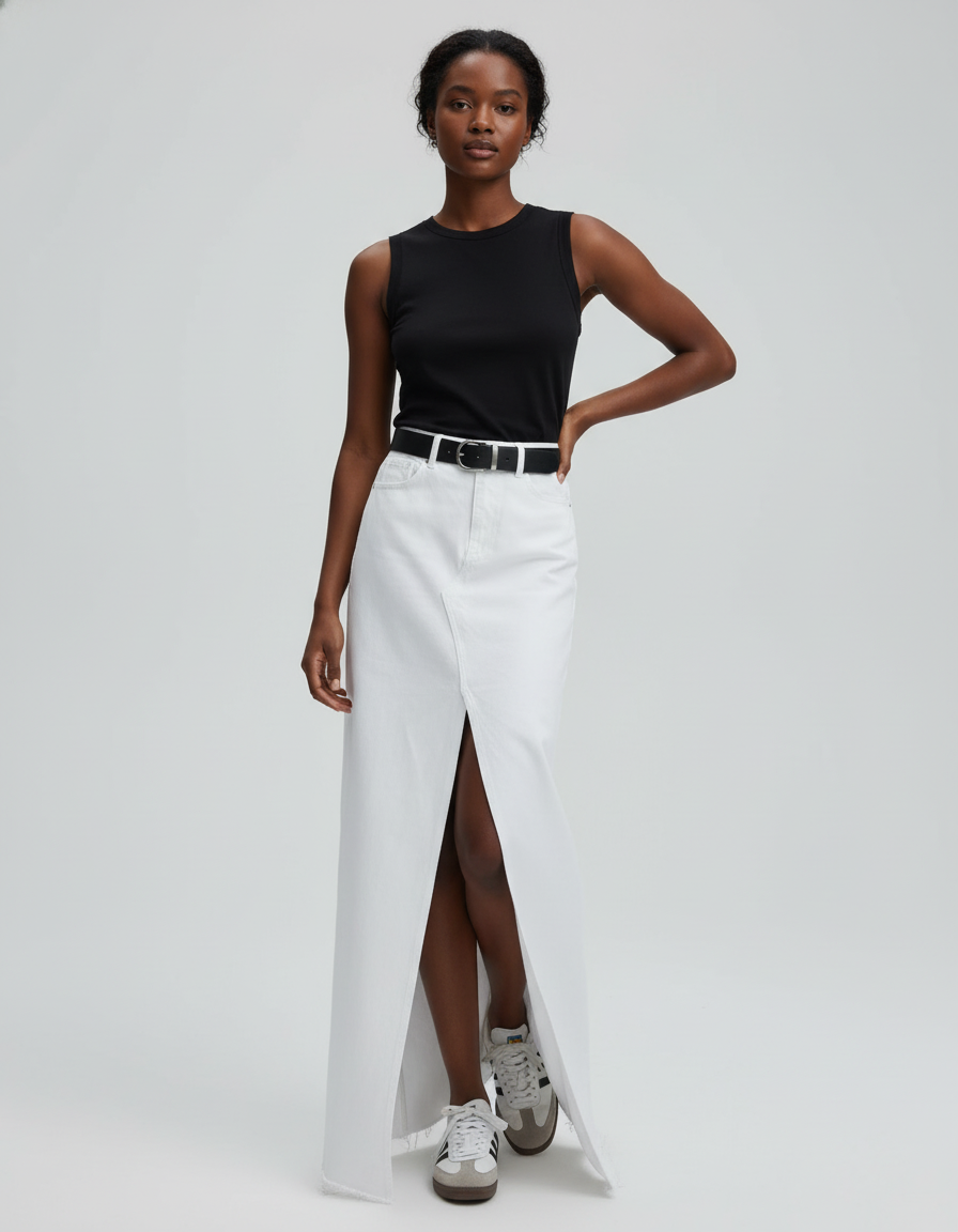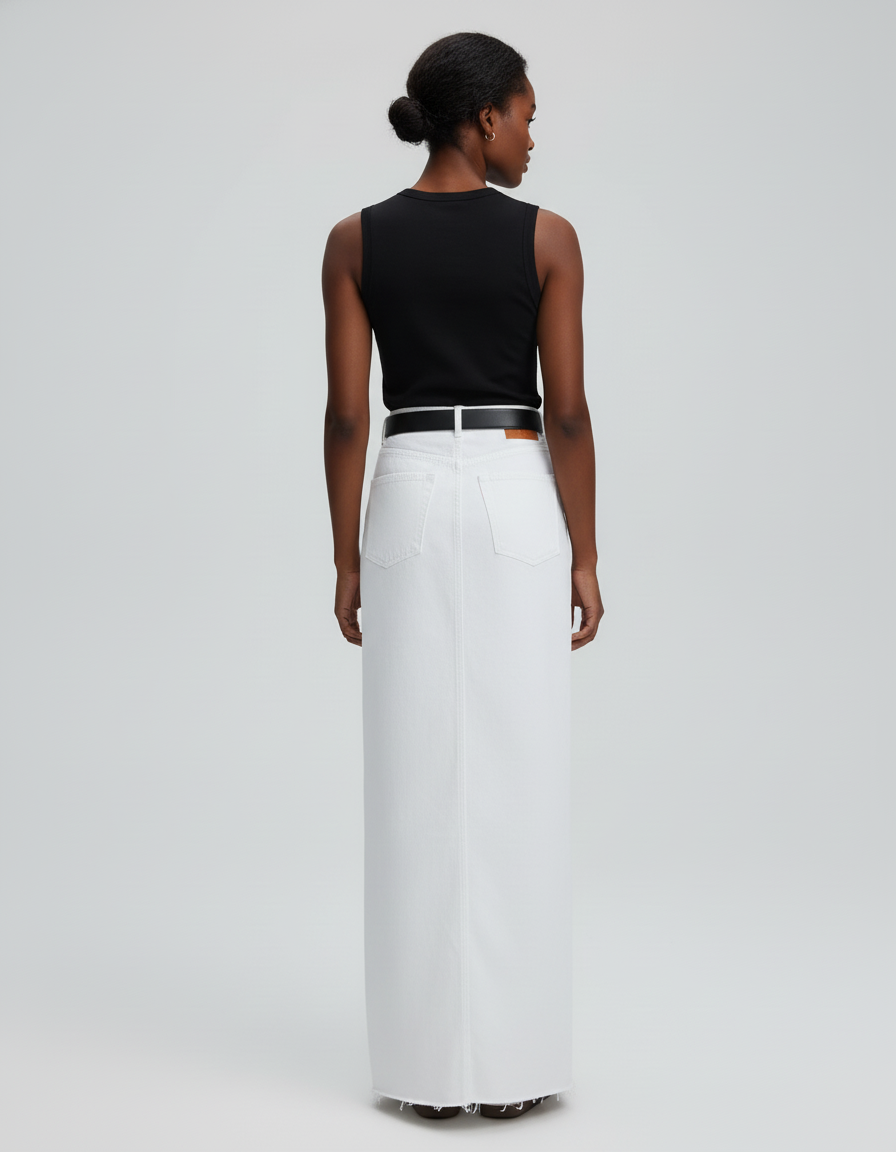 Jupe Droite Blanche Coton Longue à Fente Jupe Blanche