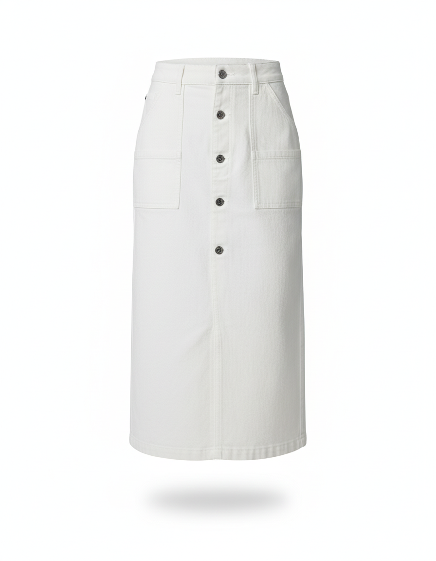 Jupe En Jean Blanche Grande Taille : Modèle Midi Boutonné