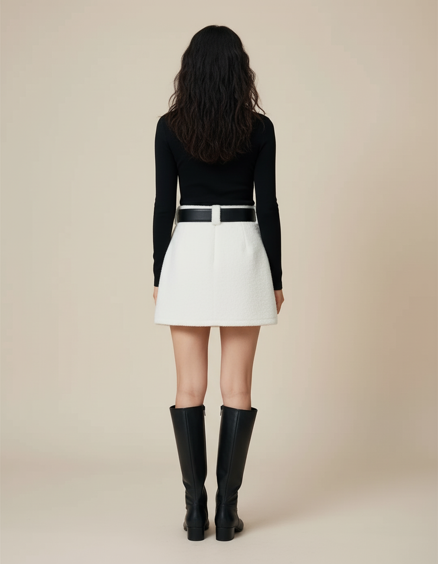 Ce qui distingue notre Jupe Trapèze, c'est son équilibre parfait. La coupe trapèze flatte toutes les morphologies, tandis que le tweed blanc immaculé apporte une luminosité et une versatilité incomparables. Portée avec des bottes hautes pour un look hivernal raffiné ou des escarpins pour une élégance printanière, elle s'adapte à vos envies. Chaque détail, de la qualité du tissu à la finition impeccable, est pensé pour vous offrir une sensation de luxe concret. Adoptez cette jupe et affirmez votre style avec une confiance sereine, jour après jour.